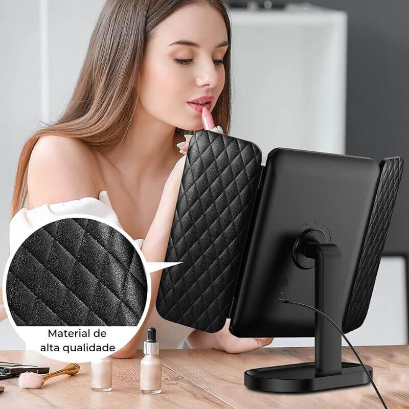 O Trifold© é o espelho perfeito para transformar sua rotina de maquiagem. Com design sofisticado e funcionalidades incríveis, ele oferece a melhor experiência para quem busca praticidade e precisão.