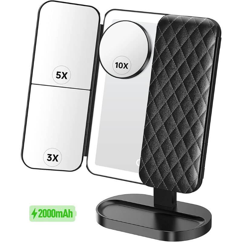 ✔️ Zoom Embutido: Os espelhos laterais possuem zoom de 3x e 5x, permitindo máxima precisão nos detalhes da maquiagem.